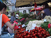 花市も多く出ており、野菜、チーズ、甘いお菓子、もちろん魚も。